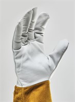 En robust svets-(TIG) och värmebeständig handske i högkvalitativt fullnarv getskinn med Kevlar®-sömmar. Bra skydd mot nötning. Tål kontaktvärme upp till 100°C. Handsken har ett förstärkt pekfinger, förstärkta sömmar, utmärkt fingertoppskänslighet, en bekväm passform och en hög skyddsnivå. Den tål även svetsgnistor och stänk.