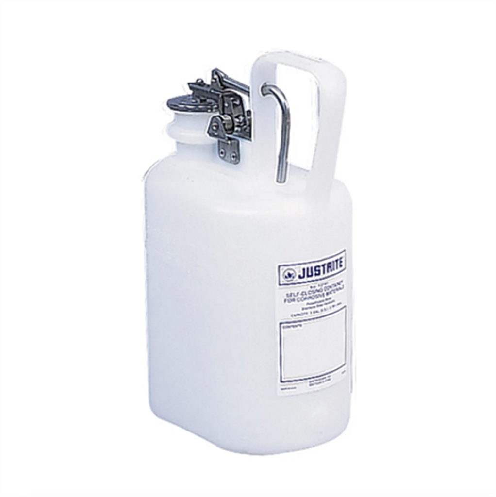 Halvgenomskinlig högdensitetspolyeten står emot syror och frätande ämnen. Storlekarna 2 och 5 gallon (7,5 och 19 liter) har ett fast läge på handtaget, vilket gör att locket kan hållas öppet för enkel påfyllning. En fjäderstängd lock ger en tät försegling.