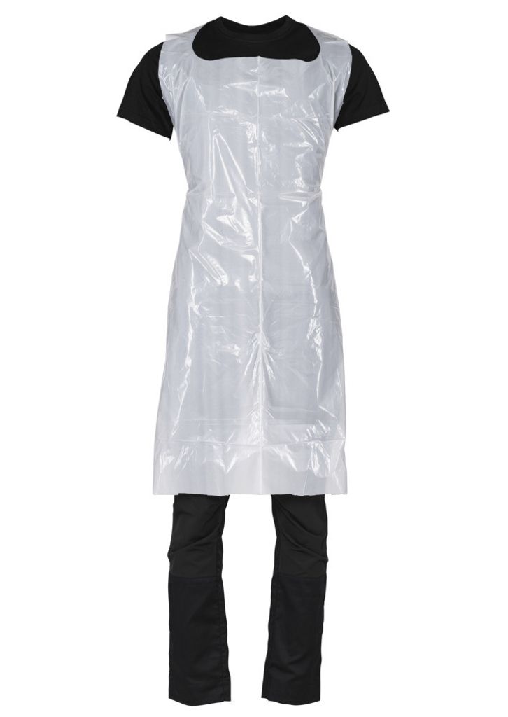 "Detta engångsförkläde är utvecklat för att ge ett grundläggande skydd i miljöer där kläder behöver skyddas mot smuts, vätska och stänk. Det används brett inom livsmedelshantering, industri, städning och andra verksamheter där hygien och renlighet är viktigt. Tillverkat i polyeten fungerar förklädet som en effektiv barriär mot fukt samtidigt som det är lätt och smidigt att använda. Det tar minimal plats och kan snabbt tas på vid behov, vilket gör det praktiskt i arbetssituationer där skydd behövs ofta men under kortare perioder. Den generösa storleken ger god täckning över kroppen och skyddar effektivt framsidan av arbetskläder. Den transparenta designen gör det enkelt att bära över arbetskläder utan att dölja dem, vilket kan vara en fördel i vissa arbetsmiljöer. Eftersom förklädet är avsett för engångsbruk säkerställs en hygienisk användning varje gång. Det minskar risken för att smuts och bakterier sprids mellan olika arbetsmoment. Det här är ett standardval – enkelt, funktionellt och tillräckligt i de flesta situationer där avancerat skydd inte krävs."