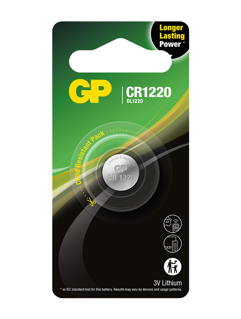 "GP Batteri CR1220 är ett högkvalitativt litium‑knappcellsbatteri som levererar 3 V stabil energi till en rad små elektroniska apparater. CR1220‑formatet (ungefär 12,5 mm i diameter och 2 mm tjockt) gör batteriet både kompakt och lätt att använda i enheter där utrymmet är begränsat, vilket gör det perfekt för exempelvis klockor, kalkylatorer, fjärrkontroller, sensorer och fjärrnycklar. Litiumtekniken ger hög energitäthet och låg självurladdning, så batteriet håller laddningen länge – både i förvaring och under användning – vilket gör det till ett pålitligt val för både vardagliga prylar och backup‑funktioner. Batteriet är enkelt att installera och passar många standardiserade hållare som kräver CR1220‑batterier. Ett litet batteri som gör stor skillnad när det gäller driftsäkerhet och livslängd i dina elektronikprodukter – enklare, effektivare och mer pålitligt strömförsörjt."