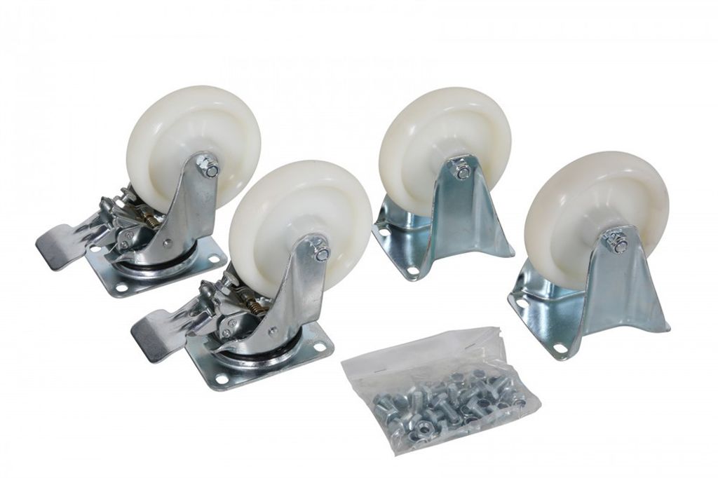 Hjulsats nylon med broms till tippcontainer Tippo gör din tippcontainer både mobil och säker! Den kompletta hjulsatsen med slitstarka nylonhjul och inbyggd broms ger dig enkel manövrering av containern på betonggolv eller hårda ytor – och bromsen gör att du tryggt kan låsa den när den ska stå still. Perfekt tillbehör för verkstad, lager eller industri där flexibilitet och kontroll är viktigt.