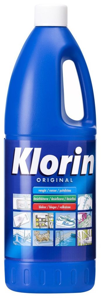 "KLORIN Naturell 1,5 L är ett klassiskt och mångsidigt rengörings‑, blek‑ och desinfektionsmedel som ger effektiv hygienrengöring i många olika miljöer. Produkten är baserad på klor (natriumhypoklorit) som gör den kraftfull mot bakterier, svamp och organiska fläckar, samtidigt som den hjälper till att ta bort dålig lukt och missfärgningar från ytor. Detta medel används med fördel i kök, dusch‑ och tvättrum, toaletter och golv, där hygien är prioriterat, men den fungerar också utmärkt för uppfräschning av tryckimpregnerade trallar, plastmöbler och andra vattenbeständiga ytor. Produkten är färglös och basisk, vilket gör den enkel att arbeta med när den späs ut i kallt vatten enligt instruktion. För bästa resultat applicerar du lösningen på ytan med borste, svamp eller trasa, låter den verka några minuter upp till 15 minuter och sköljer sedan med rent vatten. Denna metod säkerställer både rengöring och desinfektion i ett och samma steg. Observera att klorin är ett starkt medel och ska hanteras med försiktighet – använd gärna skyddshandskar och undvik kontakt med känsliga material, textilier eller färgade ytor eftersom klorins blekande egenskaper kan orsaka missfärgning. Sammanfattningsvis är detta en effektiv, bredverkande och lättanvänd lösning för rengöring, blekning och hygien‑desinfektion i såväl professionella som privata miljöer – perfekt när du vill ha rent, fräscht och hygieniskt rent på ett enkelt sätt."