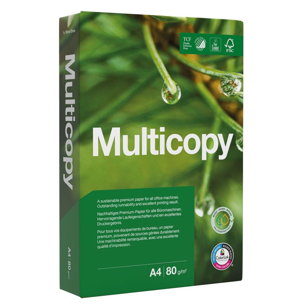Multicopy Kopieringspapper A4 80g ohålat, 5x500st/frp,