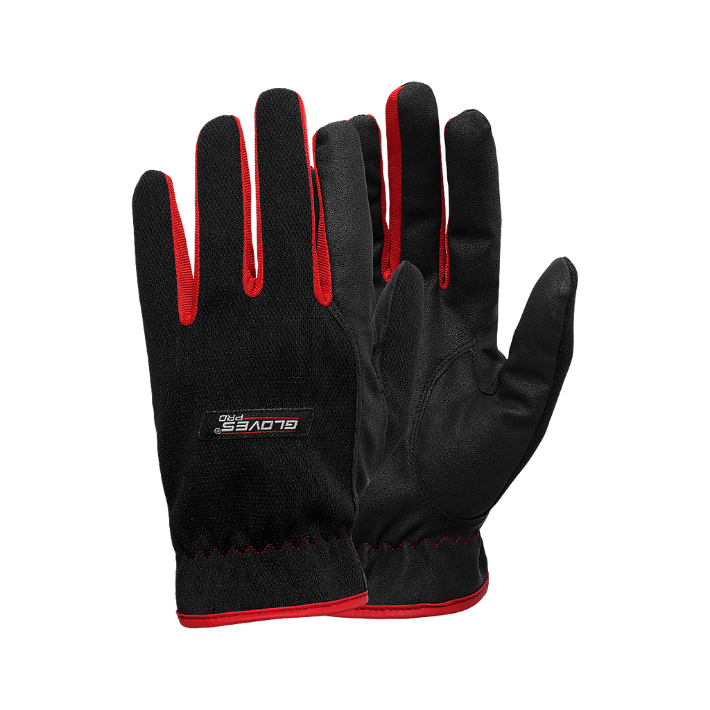 RED 1 – Montagehandske i Syntetläder med Meshbaksida | Touchscreen-kompatibel, 12 par/frp