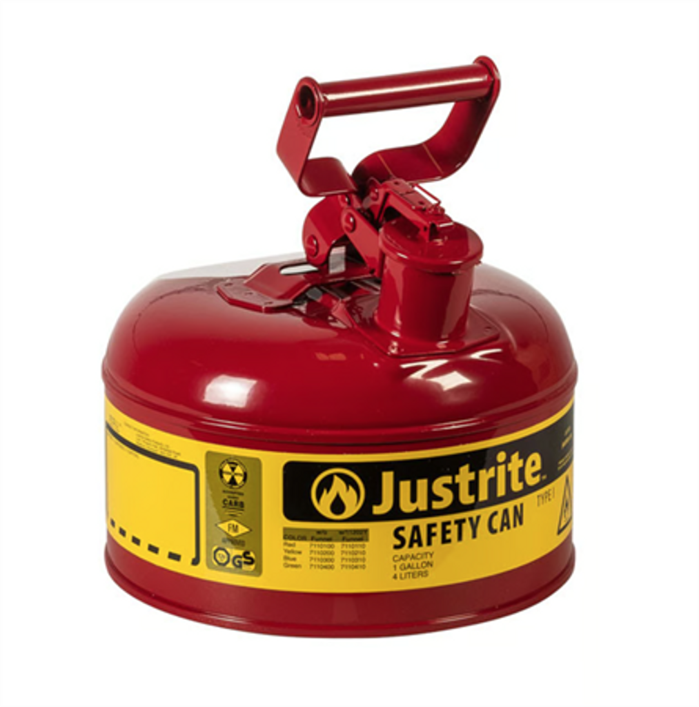 "Designad med en enda pip för både påfyllning och hällning, har det tättslutande locket en automatisk tryckavlastning som aktiveras vid 3 till 5 psig (0,2 till 0,35 bar) för att skydda mot risk för sprängning eller explosion. Varje kärl är tillverkat av högkvalitativt belagt stål och testas för att garantera 100 % läckagesäker konstruktion. Den tåliga pulverlackeringen står emot kemikalier och klarar tuffa förhållanden. Varje Justrite säkerhetskärl är utrustat med en flamspärr i rostfritt stål som sprider värme och förhindrar antändning via återflamma. Kärl med en kapacitet upp till 1 liter är utrustade med ett handtag med trigger-utlösning, medan större modeller har ett svängbart handtag för att underlätta bärandet av tyngre laster. För att hälla i mindre öppningar rekommenderas att använda en typ I säkerhetskärlstratt. Denna polypropen-tratt fästs vid pipens hals på typ I säkerhetskärl som är 4 liter eller större. Tratten har två positioner: ett nedfällt läge för påfyllning eller förvaring, och ett uppfällt läge för hällning. Den stora, rundade trattskålen ger skydd mot stänk och spill, och dess hållbara konstruktion är byggd för att klara tuff användning."