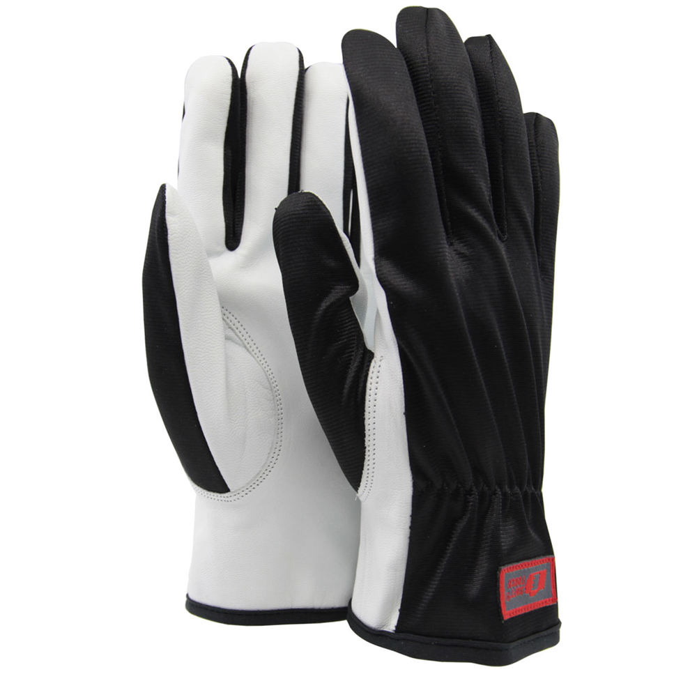 Monteringshandske i getnarvläder med svart nylon på ovanhand är extremt tunn och smidig. Elastisk resår på ovanhanden för att handsken ska sitta bättre.