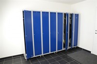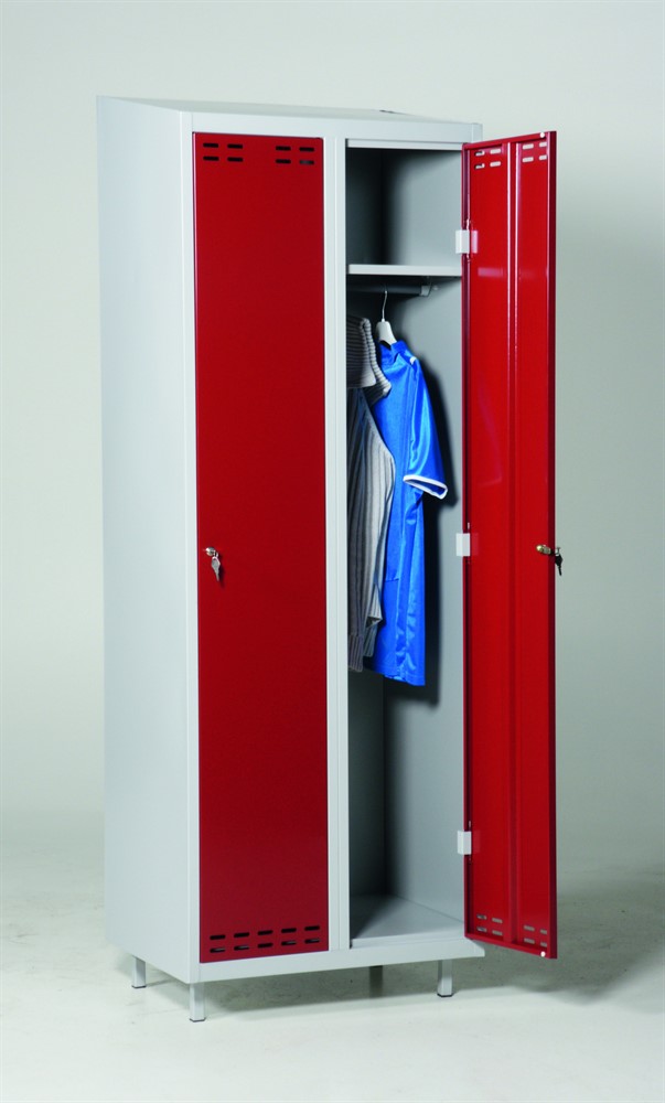 Omonterat klädskåp med två fack. Monteras enkelt utan skruvar och verktyg genom en smart konstruktion. Sluttande tak för enkel renhållning. Välventilerade med dubbla ventilationsgaller.