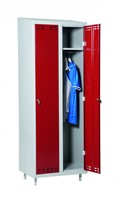 Omonterat klädskåp med två fack. Monteras enkelt utan skruvar och verktyg genom en smart konstruktion. Sluttande tak för enkel renhållning. Välventilerade med dubbla ventilationsgaller.